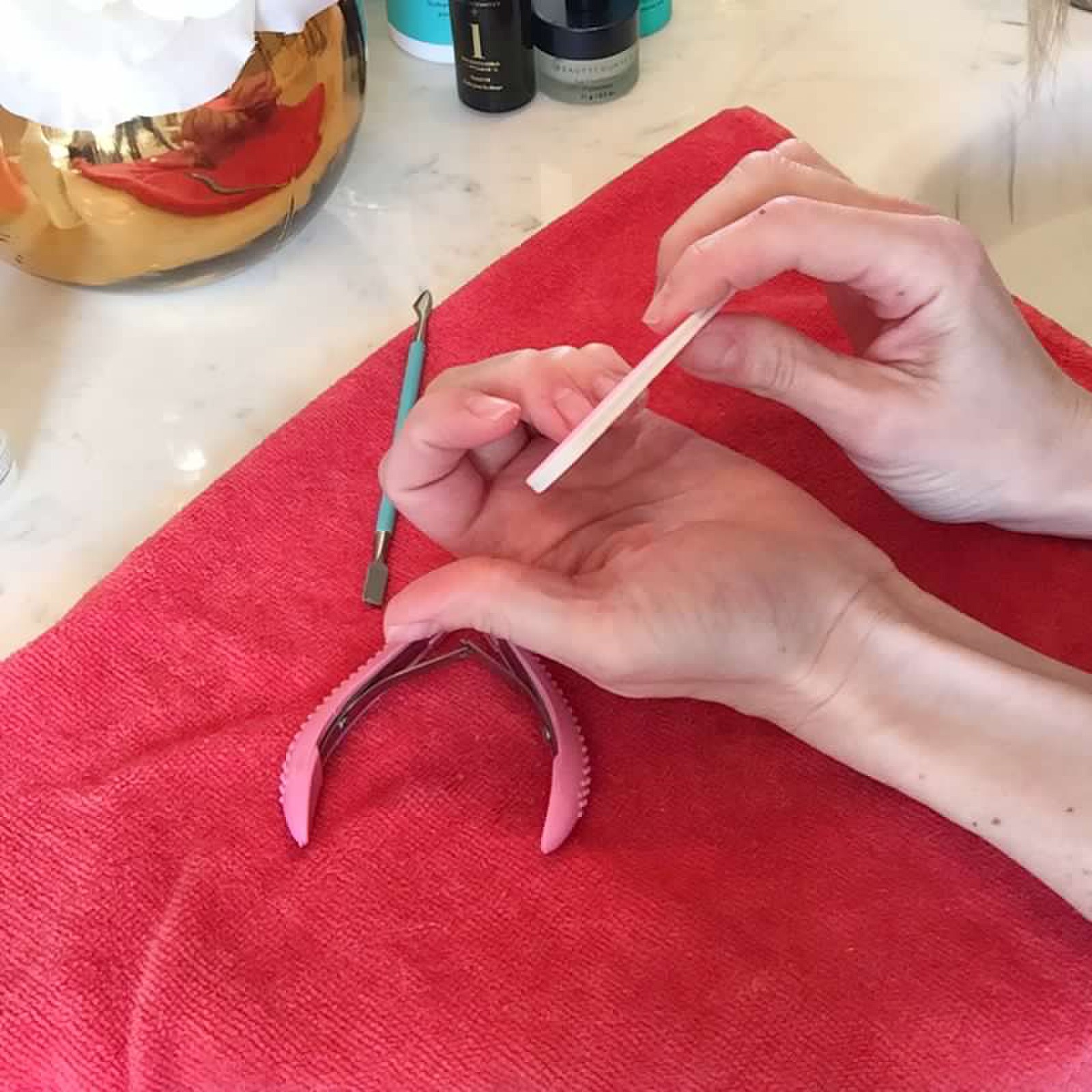 Don’t forget that giving yourself a good at-home manicure takes time, patience, and practice. Hopefully this helps you extend the time in between professional manicures and save you a couple bucks in the process!